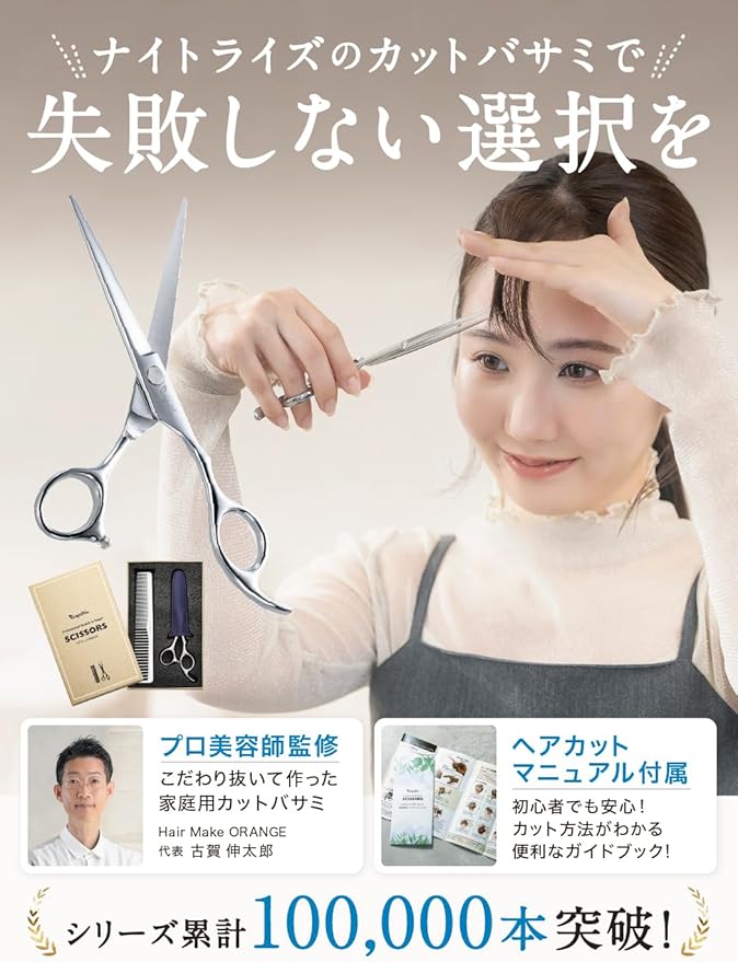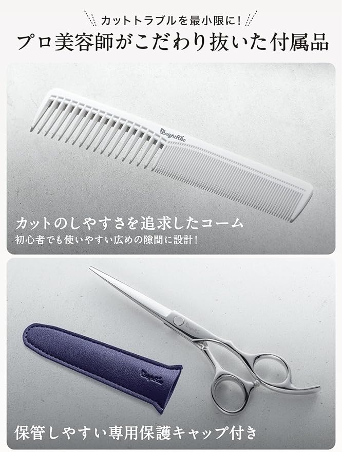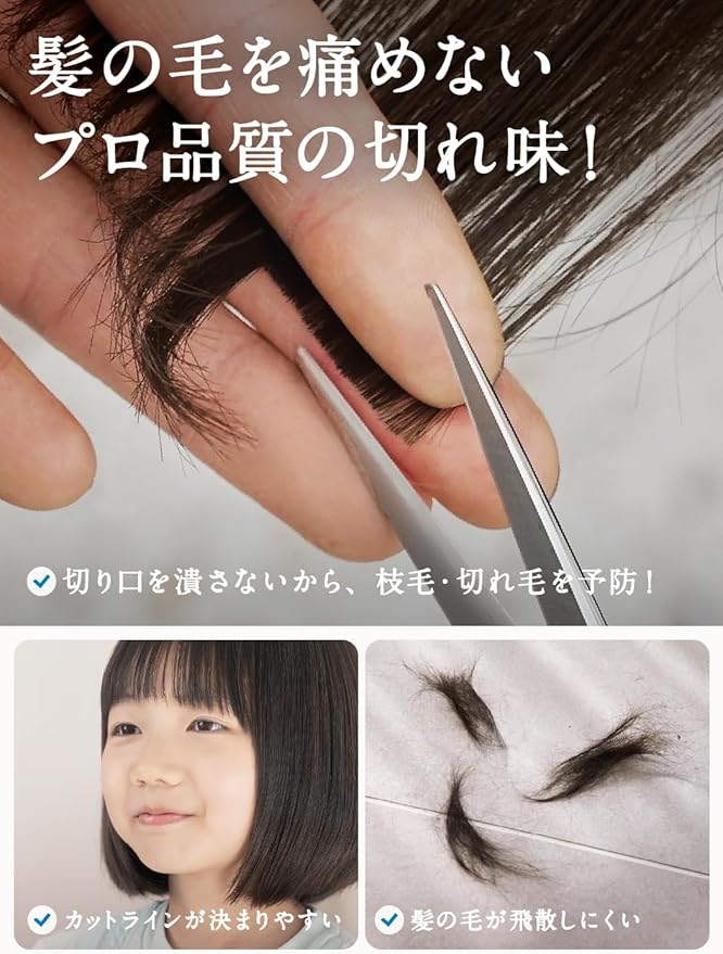 【対象】 右利き専用のカットハサミです。初めてセルフカットに挑戦される方、お子様やご家族のカットをされる方、プロの美容師の方。当製品は初心者からプロの方まで幅広くお使いいただける仕様となっております。