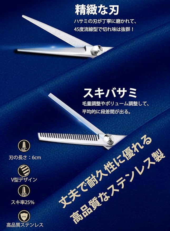 頑丈、切れ味抜群、耐久 特級ステンレス製のカットシザー、手仕上げすることで、刃の保持力を向上できることで、耐久性がある優れた品質です