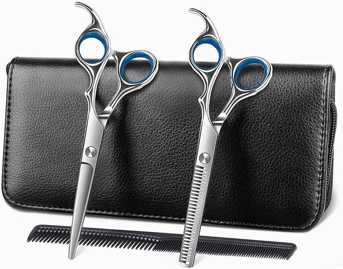 豊富な付属品 カットシザー、 セニングシザー、革製ケース、コーム(くし)クリップ
