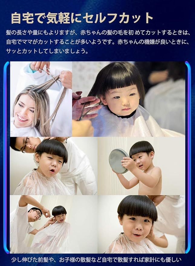 自宅で手軽にヘアカット 両はさみには小指かけ、ヒットポイントなど持ち手の細かい工夫が施されているため、プロでも初心者でも使いやすい作りになっています。自宅でのセルフカット用、子供の髪の毛を切りました。