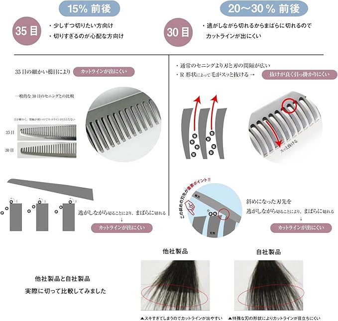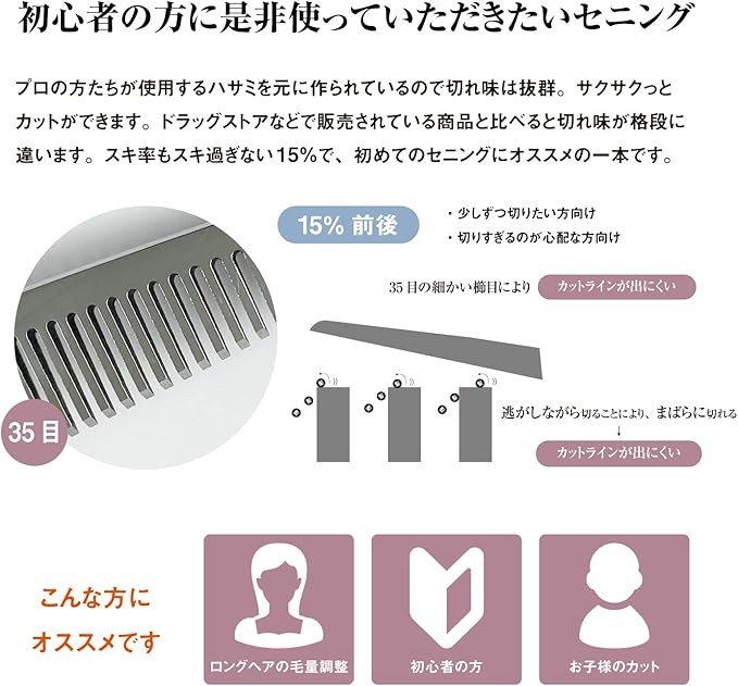 【スキ率】15%前後※毛量や毛質、使い方によりスキ率は変わります。