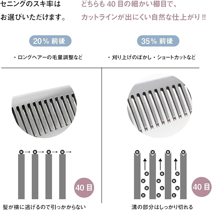 【スキ率】20%前後※毛量や毛質、使い方によりスキ率は変わります。