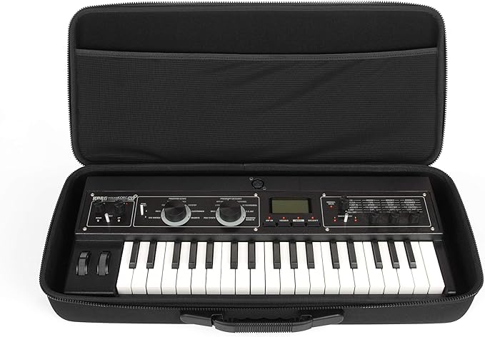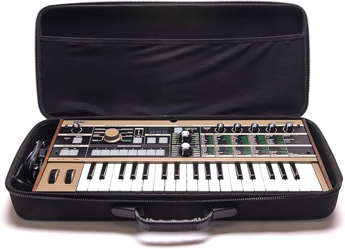 【特徴】本体を優しく守る柔らかいベルベット素材をインナーに採用 / ケーブル・アダプター収納用メッシュポケット / 衝撃に強い設計:高級感がある防水性の合成皮革(セミハード) / スーツケースやバックパックに収まりやすいサイズ (内寸 幅 55.88 cm 奥行き 22.86 cm 高さ 9.53 cm 外寸 幅 60.33 cm 奥行き 27.94 cm 高さ 9.53 cm , 重さ 0.9kg) 注)MicroKorg XL+は本体のサイズの仕様上、acアダプターをケースに同梱することができません。予めご了承ください。