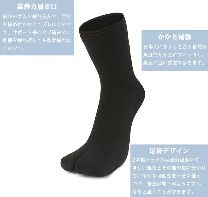 2本指ソックスは最低限動いてほしい親指とその他の指に分かれているから可動性を十分に備えつつ、普通の靴下のようにすんなりと履くことができます。