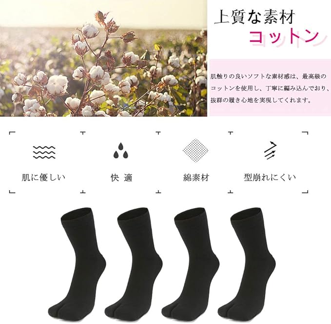 吸湿力抜群!上質な綿素材で肌にやさしいの上に、汗を吸収する素材なので、一日中足をスッキリさせます。いつも快適な状態でいられます。