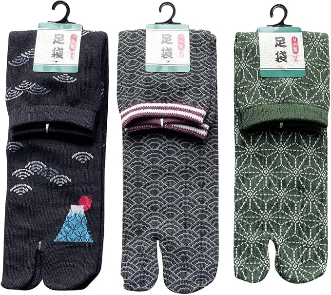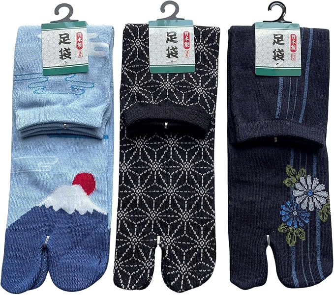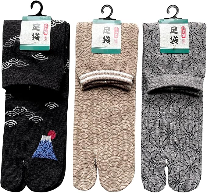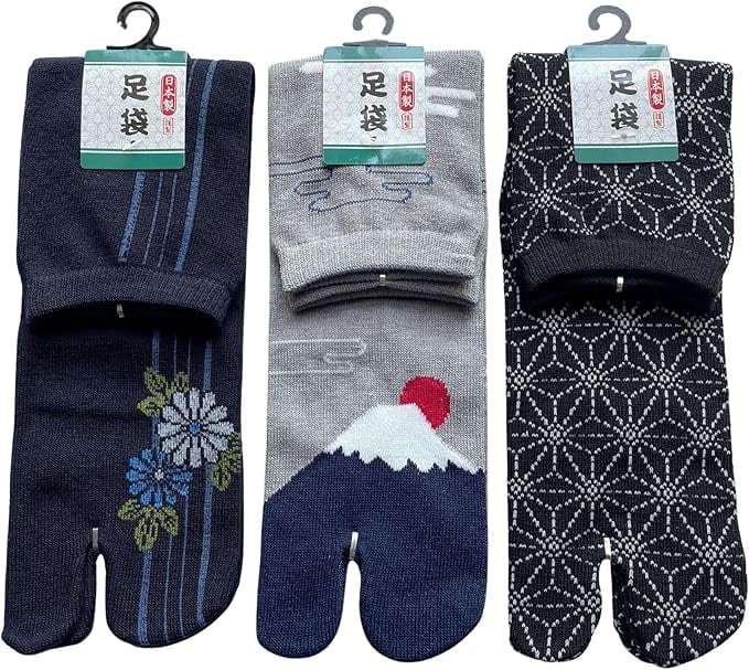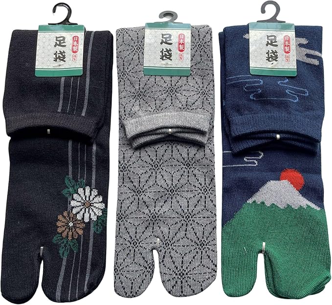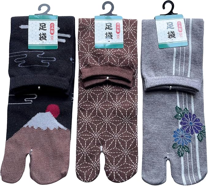【サイズ】25-27cm、足袋ソックス3足組、3種類の柄でお届けします。色はお任せ下さい。画像のような色です。