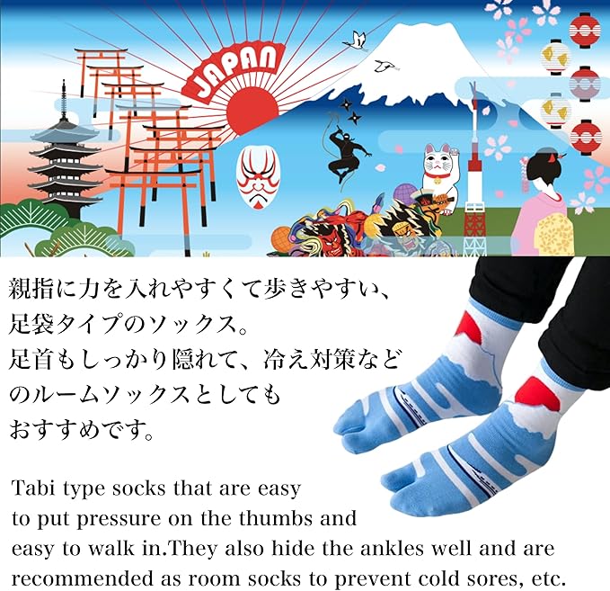 [のレン] 足袋ソックス メンズ レディース キッズ (男女兼用) 足袋靴下 二本指/日本製 奈良産 綿 くつ下 クルー丈 中丈 和柄/外反母趾 防寒 厚手 ビジネス スポーツ 靴下/海外土産 留学 ギフト | oioioichan