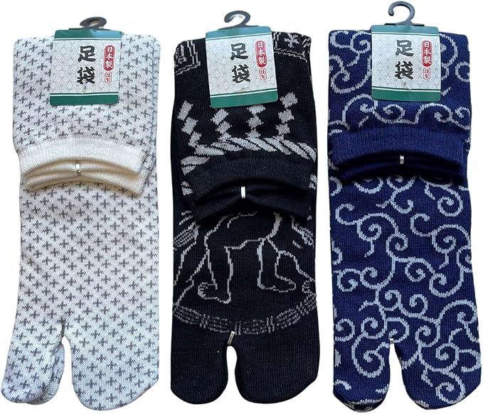 日本製【サイズ】25-27cm、足袋ソックス3足組、3種類の柄でお届けします。柄はお任せ下さい。