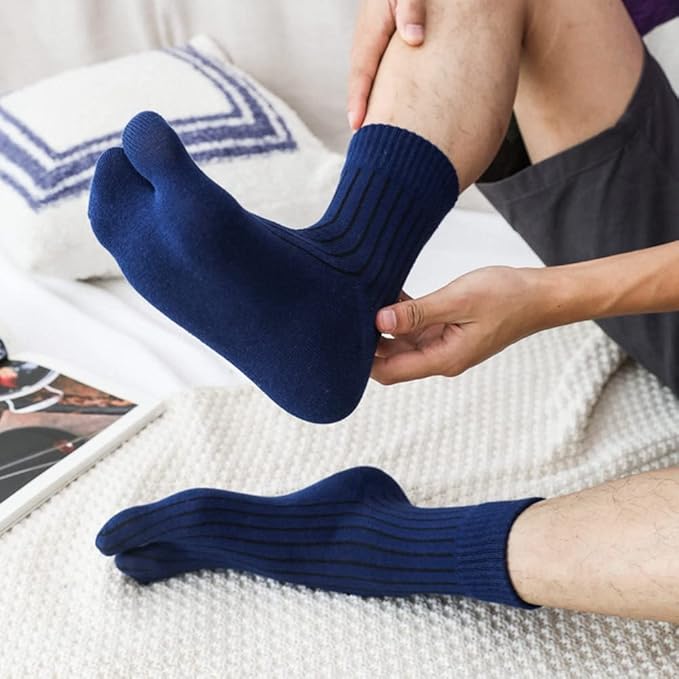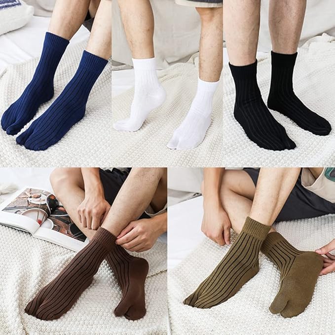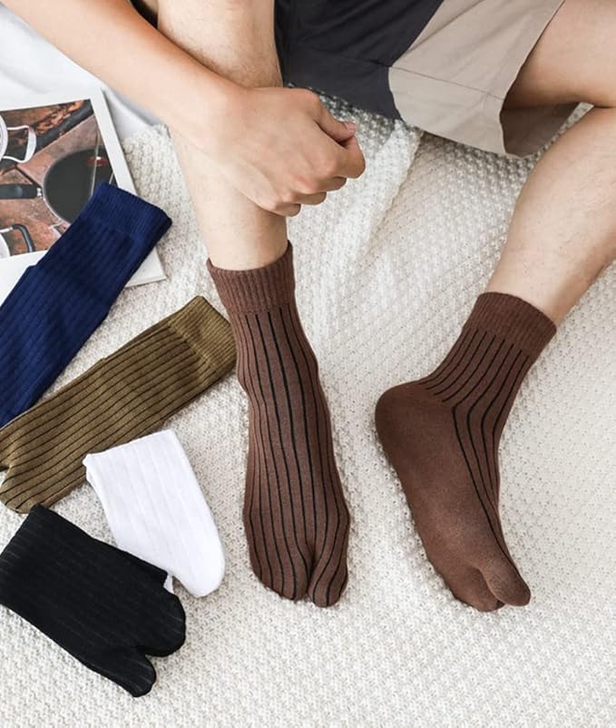 [なぜ2本指ソックスを選ぶのですか]:2本指の足袋型ソックスは、足裏のツボを刺激し、脳を活性化させます。また、足指の動きがよくな るため、の効果もあります。