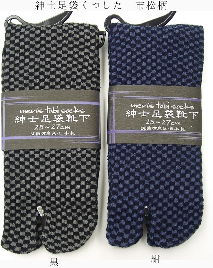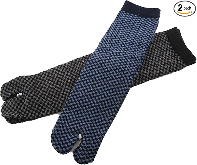 seiryuger メンズ 紳士 たびソックス 足袋 靴下 足袋型靴下 クルーソックス 市松柄 和柄 黒 紺 フリーサイズ 25~27cm対応 抗菌防臭 2柄 2種類 2足セット 日本製 春夏秋冬 オシャレ