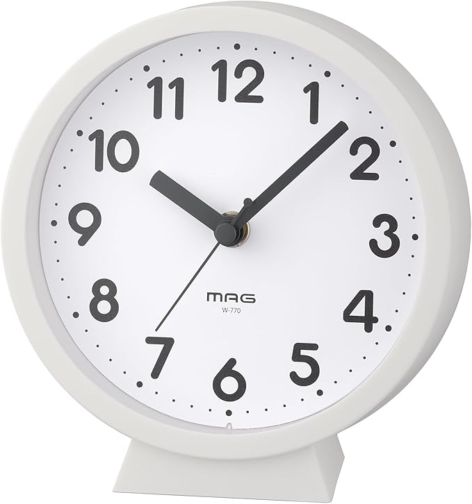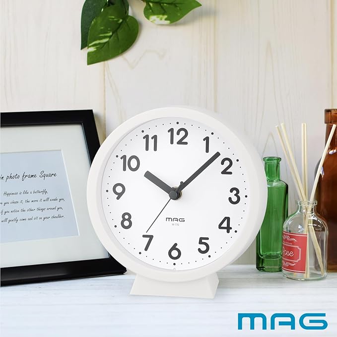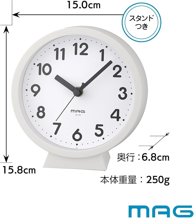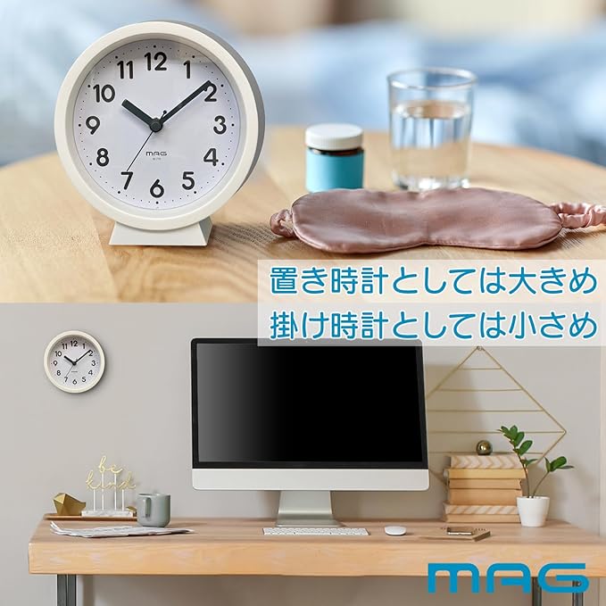 MAG(マグ) 小さい 小型 掛け時計 壁掛け時計 置き時計 置き掛け兼用 スタンド アナログ かわいい おしゃれ インテリア ウッディ 木目調 静音 連続秒針 直径15.0㎝ ホワイト コンポート AW-770 WH-Z ノア精密 | oioioichan