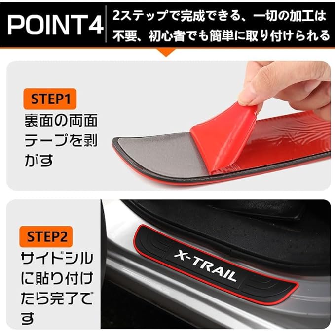 LEXLEYS 日産 エクストレイル T33系 T32系 サイドステップガード スカッフプレート 車用ドアモール サイドモール ドアガードステッカー スカッフプロテクトシート キズ防止 両面テープ付き 汚れ防止 | oioioichan