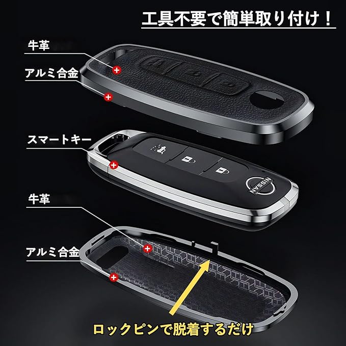 取り付けは非常に簡単でキー本体に被せるだけなので工具は不要。スマートキーの電波に影響なし。安心して使用可能。ニッサン車 専用設計だから、しっかりフィット&固定感抜群。