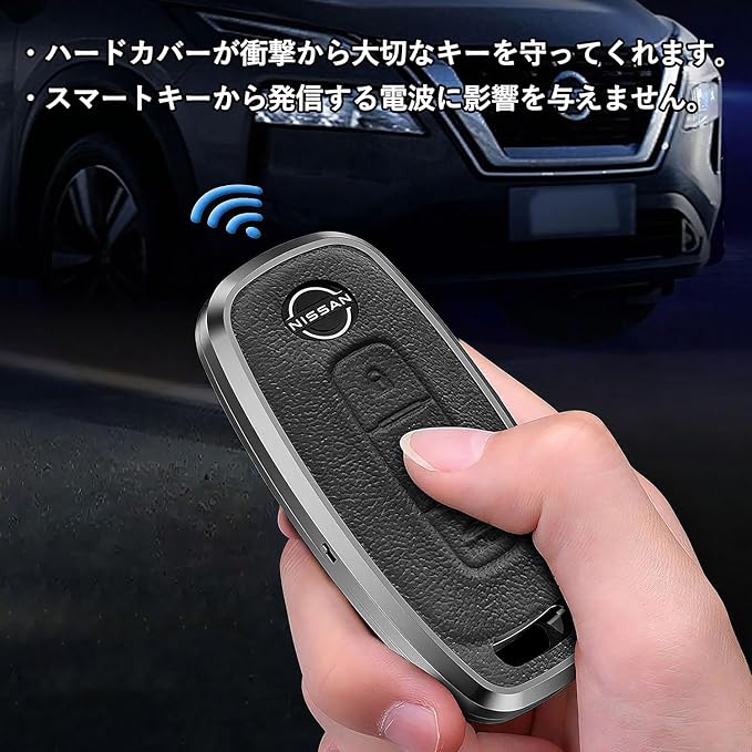 【付属品】キーリング / 本体同色のレザーストラップ 【素材】牛革&アルミニウム合金 【ご注意】NISSAN 純正品ではなく社外品になります。画像の純正キーは付属されません。