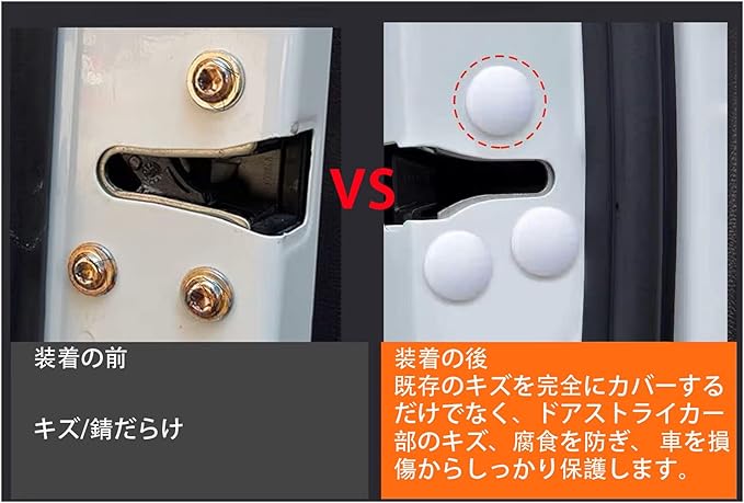 【汚れ/錆防止】既存のキズを完全にカバーするだけでなく、ドアストライカー部のキズ、腐食を防ぎ、 車を損傷からしっかり保護します。