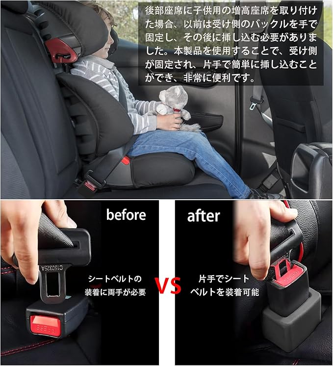 差し込み簡単&しっかり固定:本製品を装着することで、バックルが少し高く立ち上がった状態になり、座席の隙間に埋もれません。差し込み口が見つけやすく、片手でもサッと装着可能。毎日のストレスを大幅に軽減します。