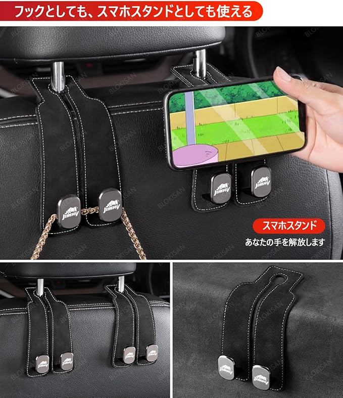 【工具不要で簡単取り付け、広範囲に適用】工具不要で、ヘッドレストの支柱に直接取り付け可能。前後座席にも対応し、便利で迅速に設置でき、車内収納の体験を向上させます。