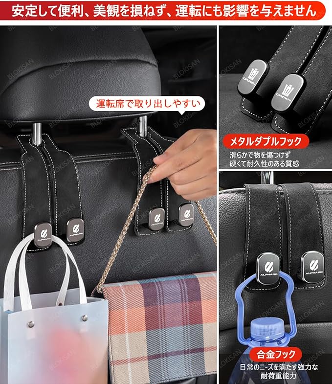 MOTTTO-PQB レクサス X/LX/CT/EX/HS/NX/ES 全シリーズ用 車用シートフック 隠れ型 金属ダブルフック 高耐荷重 車内アクセサリー 防水 防汚 ヘッドレストフック 車用品 便利な収納 (レクサス専用)
