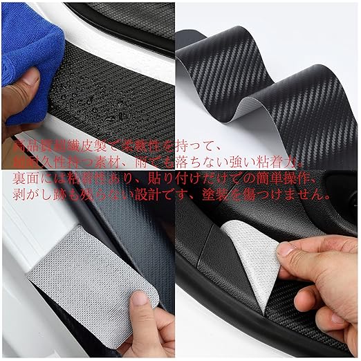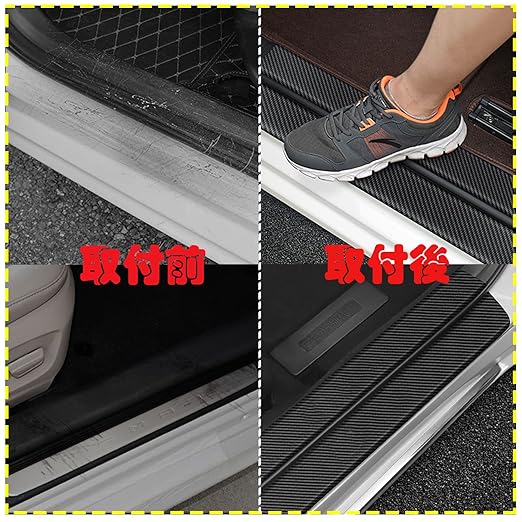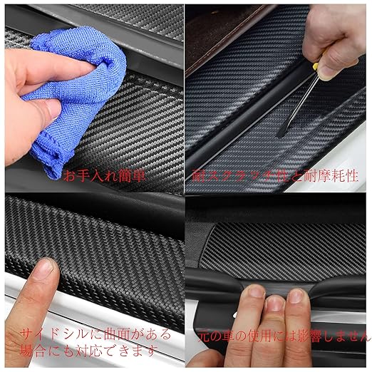 【高品質素材】スカッフプロテクトシートは高品質超繊皮製で柔軟性を持って、超耐久性持つ素材、雨でも落ちない強い粘着力。サイドシルに曲面がある場合にも対応できます、取付位置のサイズより、製品のサイズが大きすぎる場合は、車に合わせてサイズと形状をカットできます。