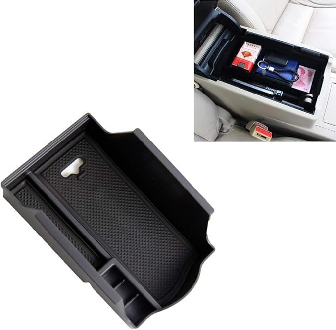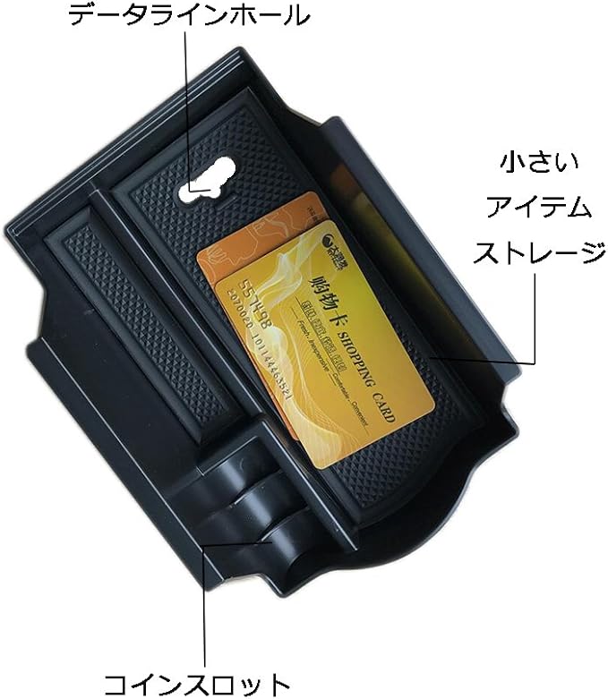 CT200h 専用アームレストボックスの素材は強度のしっかりしているトレーのABS色はブラックです。同梱品としてトレイに乗せたアイテムが滑りにくくする為ゴムのシートが入っています