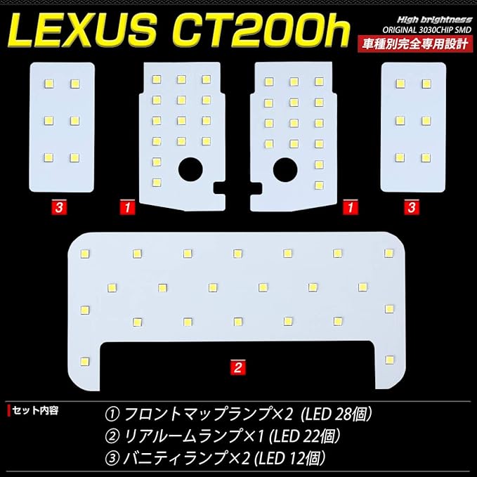 【耐熱LED採用】レクサス CT200h ZWA10 専用設計 SMD LED ルームランプセット 【専用工具・カラー取説付】 【純白色】【車検対応】LEXUS CT200h | oioioichan