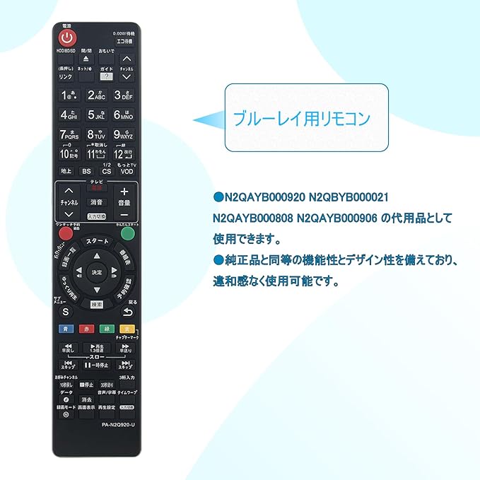 【代用リモコン】N2QAYB000920 N2QBYB000021 N2QAYB000808 N2QAYB000906