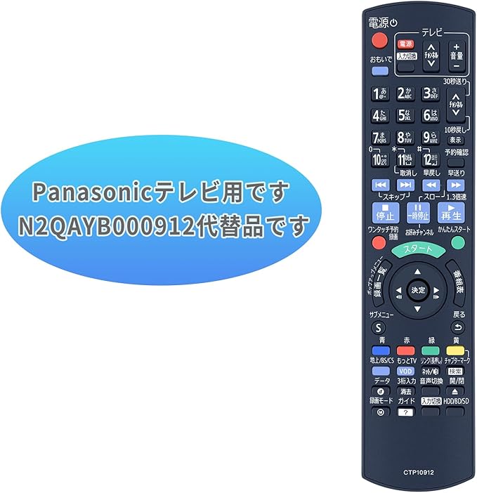 ブルーレイプレーヤーリモコン N2QAYB000912 for Panasonic パナソニックリモコン パナソニック ビデオリモコン ディーガ リモコン panasonic ir6 リモコン DMR-BWT650対応 | oioioichan