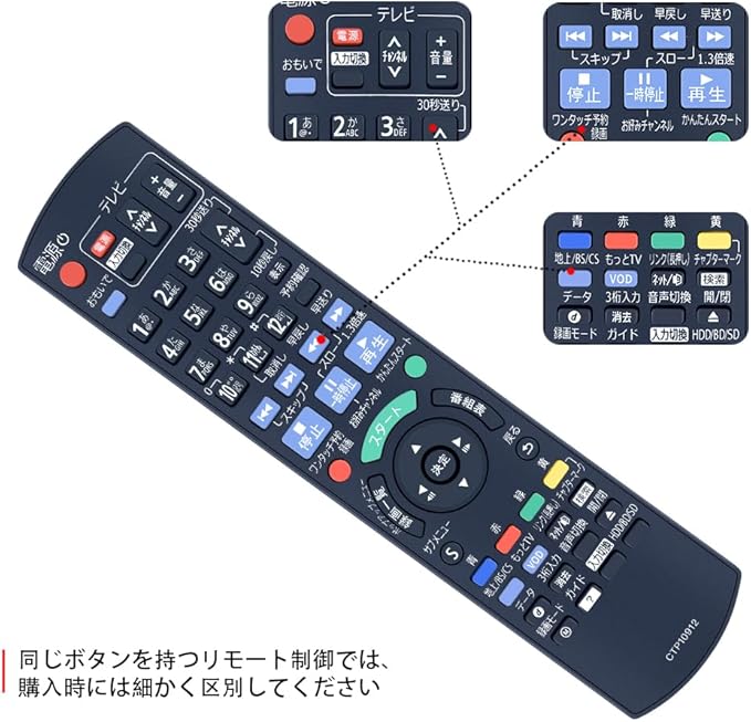 【適用機種】パナソニックブルーレイレコーダーリモコン N2QAYB000912交換用リモコン DMR-BWT650対応※ 《代表対応機種》末尾の「-K」「-S」「-W」は、本体外装の色や柄を表すコードで、機能には影響しません。