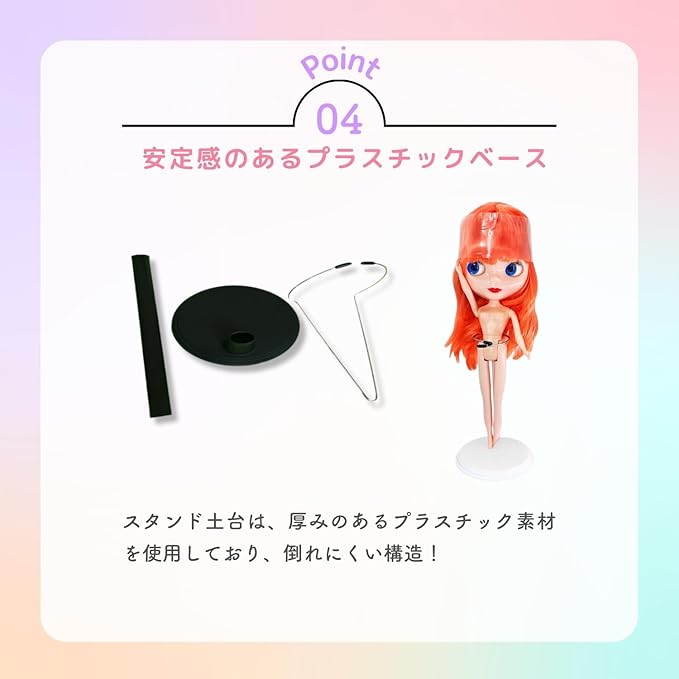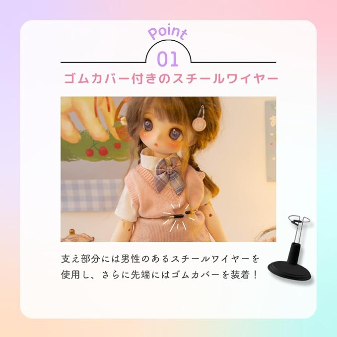 【ドールを美しくディスプレイ】お気に入りのドールをぬいぐるみをもっと美しく飾れる専用スタンド。服装やポーズに合わせて自由にディスプレイできます。