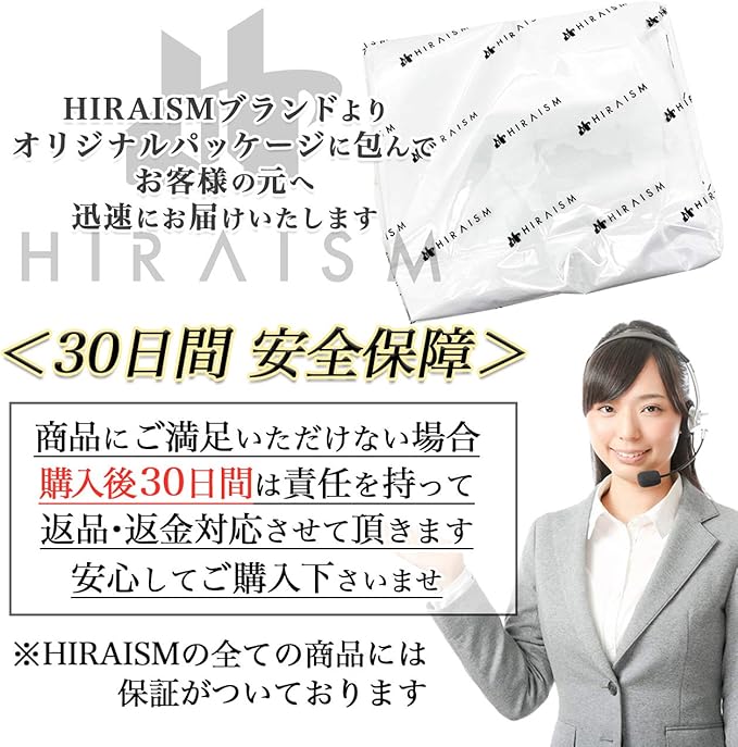 【安心の30日.&オリジナルパッケージ付】HIRAISMブランドより、オリジナルパッケージで迅速にお客様の元へお届けいたします。また本製品は購入から30日間の返品.付きとなります。商標登録第6321678号