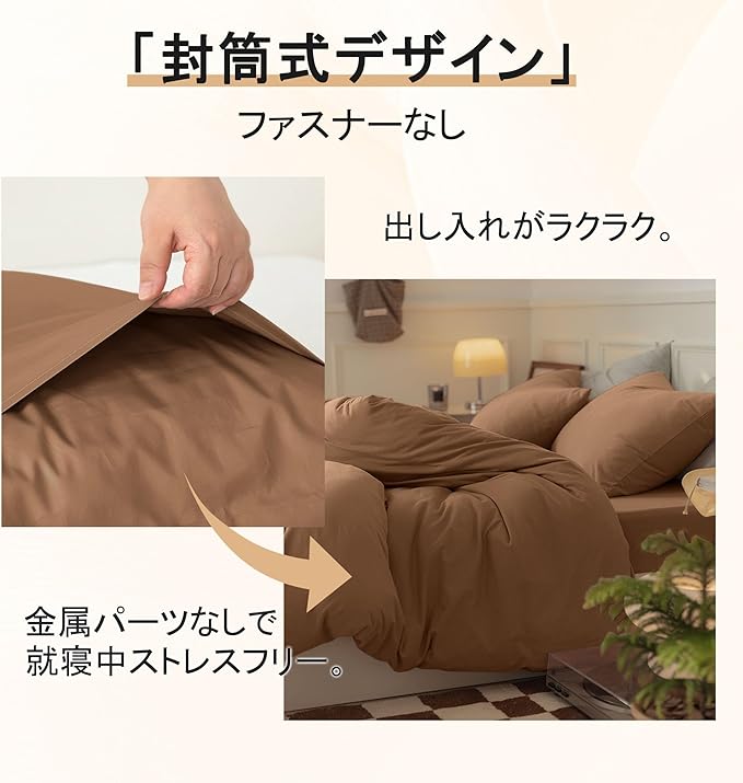 【封筒式ファスナーなし|出し入れ簡単・肌に優しい】ファスナーなしの封筒式で枕の出し入れがラクラク。生地もファスナーに噛まれるや金属部分が肌に当たる心配がなく、就寝中の肌ストレスゼロ、長期間使用しても安心。洗濯時もファスナーが引っかからず、お手入れ簡単。