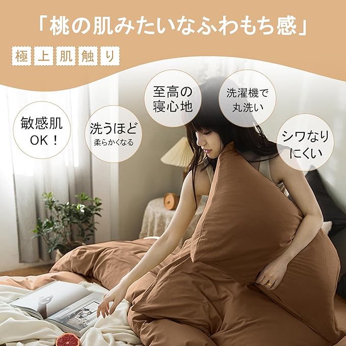 【極上肌触り|起毛加工で安眠サポート】表面の微細な起毛加工が肌に優しく、敏感肌の方やお子様にも◎。一般的な磨毛生地よりさらっとした感触で、寝返り時の摩擦音を軽減。洗濯するほど柔らかさがアップし、使い込むほどに馴染む心地よさ。