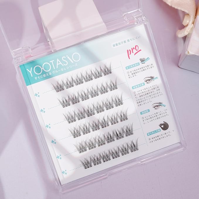 【柔軟な透明軸つけまつげ束感】YOOTASIOこのつけまつげは、アイドルグループのステージメイクからインスパイアされ、繊細な繊維とボリューム感で自然な束感を実現します。透明で柔軟な軸を採用しており、ナチュラルな見た目と快適な装着感で、日常使いから華やかな舞台メイクまで幅広く対応します。