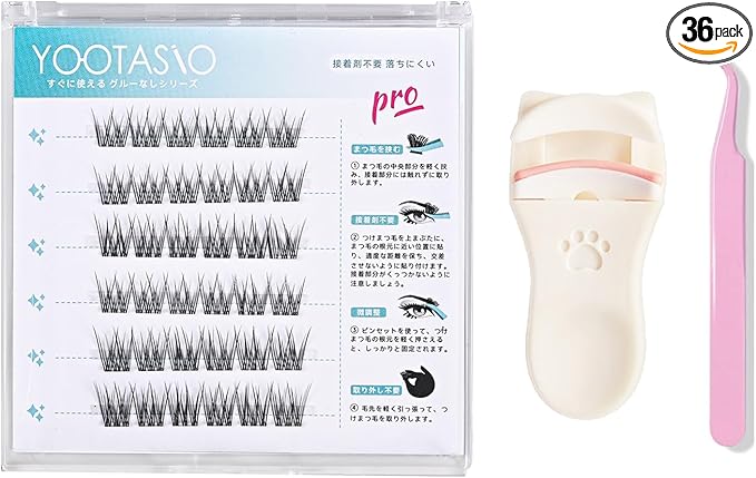 YOOTASIO1秒まつエク つけまつげ 接着剤不要 部分つけまつげ 人気 落ちにくい高い粘着力 可愛い 立体感 グルー不要 束感 初心者 丈夫な 軽量 快適 旅行と日常使い (36束透明軸+まつげカーラー+ピンセット) | oioioichan
