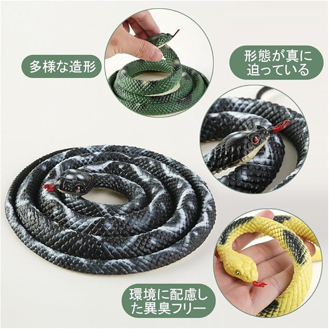 【素材】フェイクラバースネークは柔らかいゴム製で、柔らかく、本物のヘビのように丸くなり、無毒で環境に優しい塗料を使用しており、安全で形も感触もとてもリアルです。