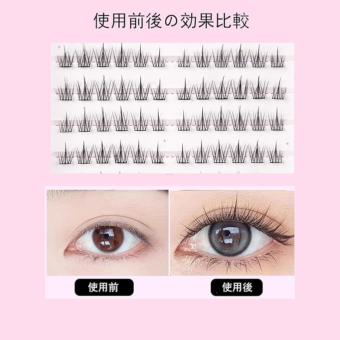 【大容量10セット,複数モデル】自分の目の形に合わせて選択自分の目の形に合わせて調整でき、1束ずつつけまつげは、ロングタイプのつけまつげよりも目のラインに沿い、よりパッチリとした印象になり、接着位置や長さによって調節できるので、それぞれの目の形のニーズに合わせやすく、自然な仕上がりとバランスの良いボリューム感を実現できます。立体感があり、まるで本物のまつげのようです。