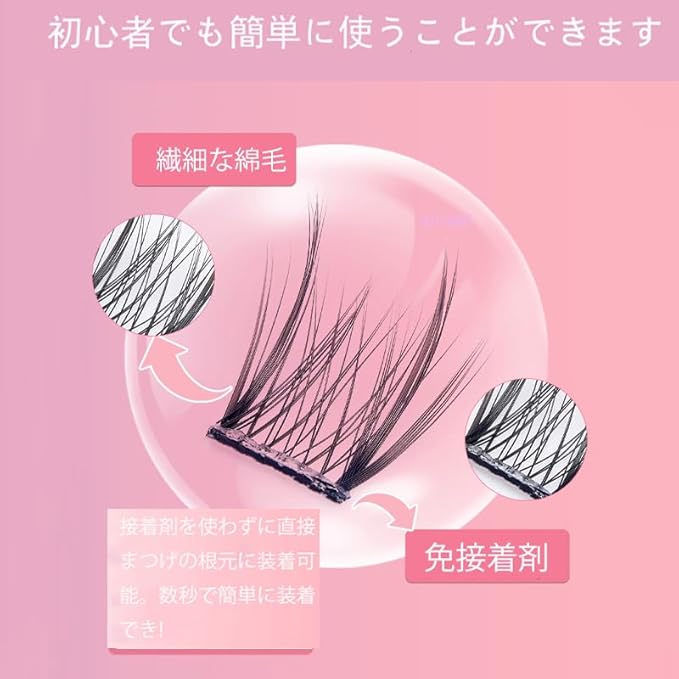 【で簡単装着、軽量】无需粘合剂1秒安装、化妆时间を短缩する3D自粘式假睫毛を1秒に使える。不需要粘着剂,只需要睫毛放在上面就可以简单完成。初学者也能轻松使用。