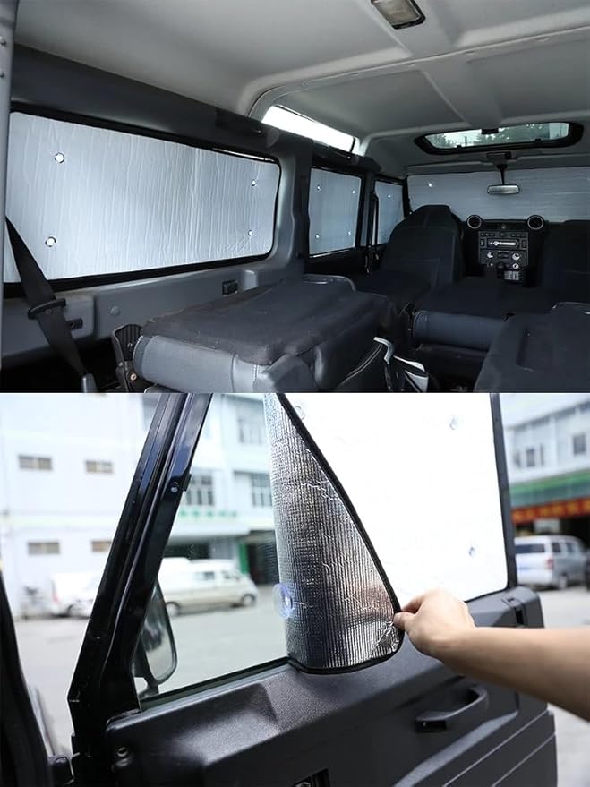 車内を涼しく保ちます。車内生地の紫外線による褪色を防ぎます。遮光効果で快適な睡眠を促し、プライバシーも確保します。
