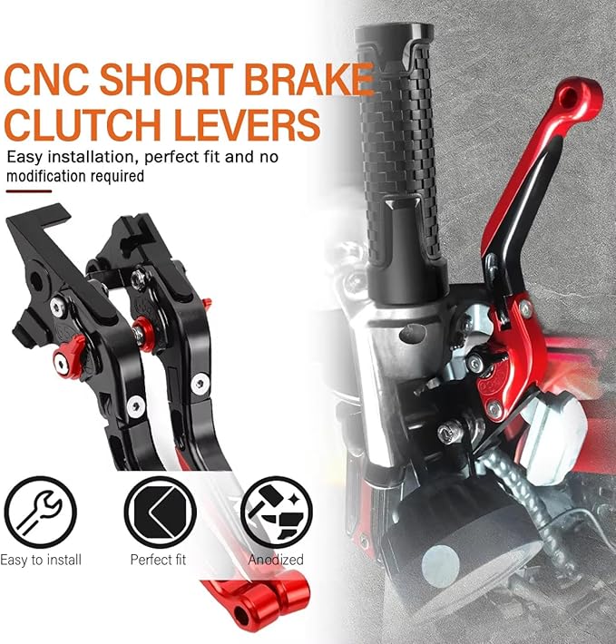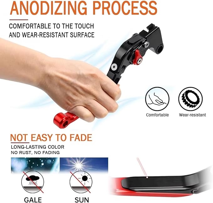 ️【優れた職人技】ブレーキレバーとクラッチレバーの表面はアルマイト加工が施され、完璧な質感とエレガントな外観を備え、色あせや錆びがなく、滑らかで光沢のある色で、バイク全体の外観を効果的に向上させます。CNC精密機械彫刻、滑らかなライン、絶妙な色彩がブレーキレバーを豪華で高貴なものにし、ライディングの旅に独特の風景をもたらし、バイクをより魅力的にします。