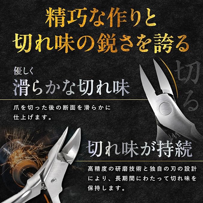 TACHII 爪切りニッパーは高級感漂う仕上げと切断力が魅力です。 足つめ専用爪切りや厚爪用の爪切りとしても、注目。 直線刃設計により、巻き爪や陥入爪のケアも簡単に行えます。 ゾンデや爪やすり付きのネイルケアキットと組み合わせれば、さらに完璧なケアが可能。 高齢者やフットケアが必要な方にも、足爪ケア用品としておすすめの逸品です。 clipperやclippersとして、海外需要にも応えられるクオリティです。 指甲や指甲剪といった中国語圏でも「匠のツール」として評価されています。 毎日の爪のケアに、「TACHII 爪切り ニッパー」でサロン級の仕上がりを実感してください。 あなたの爪に寄り添う、最高の一品をぜひ体感してみてください。