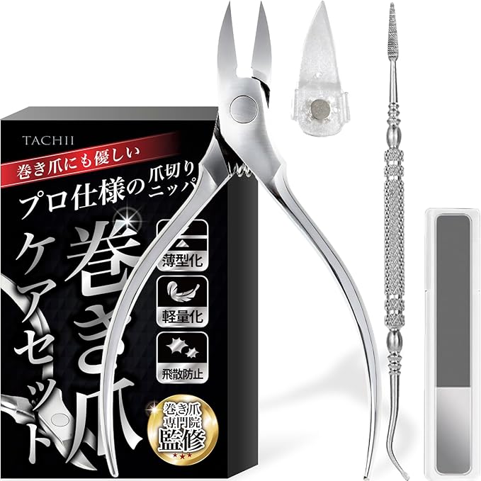 TACHII 巻き爪 爪切りニッパー 巻き爪専門院監修 高硬度ステンレス製 匠の技巧 セルフネイルケアセット 爪やすり ゾンデ 飛散ガード付 肥厚爪 陥入爪 足用 OK 直線刃 | oioioichan