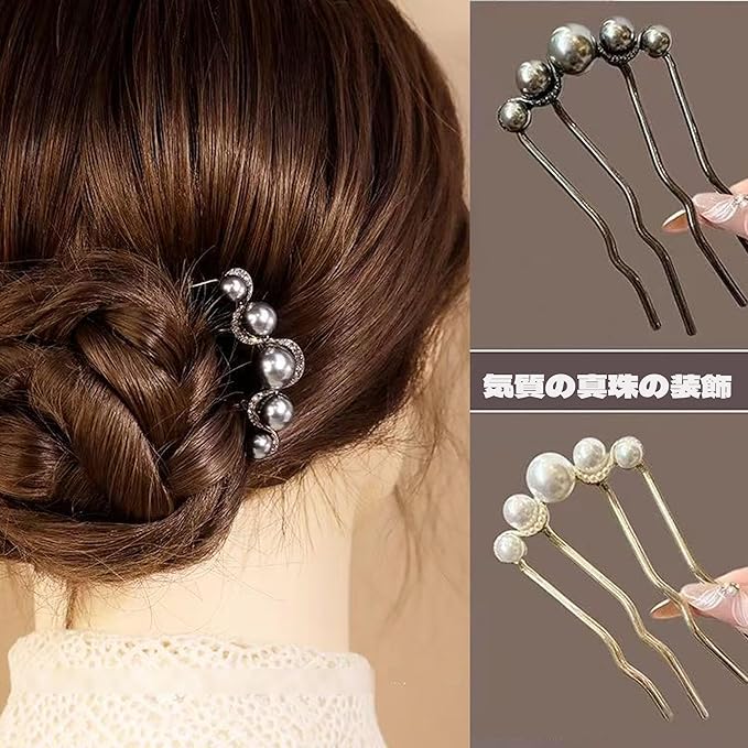 【マルチシーン対応】 ヘアアクセ シンプルでモダンなデザインなので 結婚式 パーティー 成人式 卒業式 入学式 日常の様々な場面で活躍します また 素晴らしい贈り物としてもおすすめです 可愛らしい真珠付きUピンも友人 彼女 家族へのプレゼントとして最適です