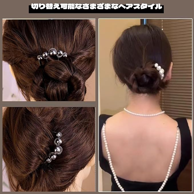 【夜会巻き コーム】 夜会巻き コーム には美しい真珠が埋め込まれており デザインはエレガントで魅力的です これらの真珠は光に照らされると輝き あなたを優雅で魅力的な存在にします は髪に美しくフィットし 滑らかで堅牢なホールドを提供します パーティー ディナー あるいはカジュアルな日常のヘアスタイルに欠かせません