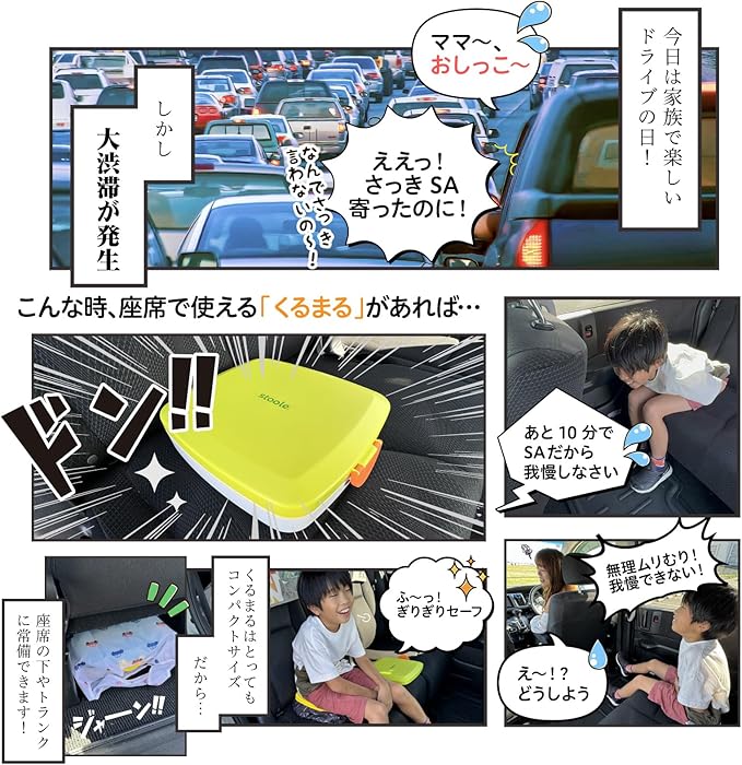✅【車の座席で使えるトイレ】スツーレから新タイプの 簡易トイレ が登場しました! 「くるま」の「 おまる 」名付けて「くるまる」です! くるまるは渋滞やアウトドア、車中泊避難時にも車内で使えるので車に1台あればいざという時のトイレも心配いりません。