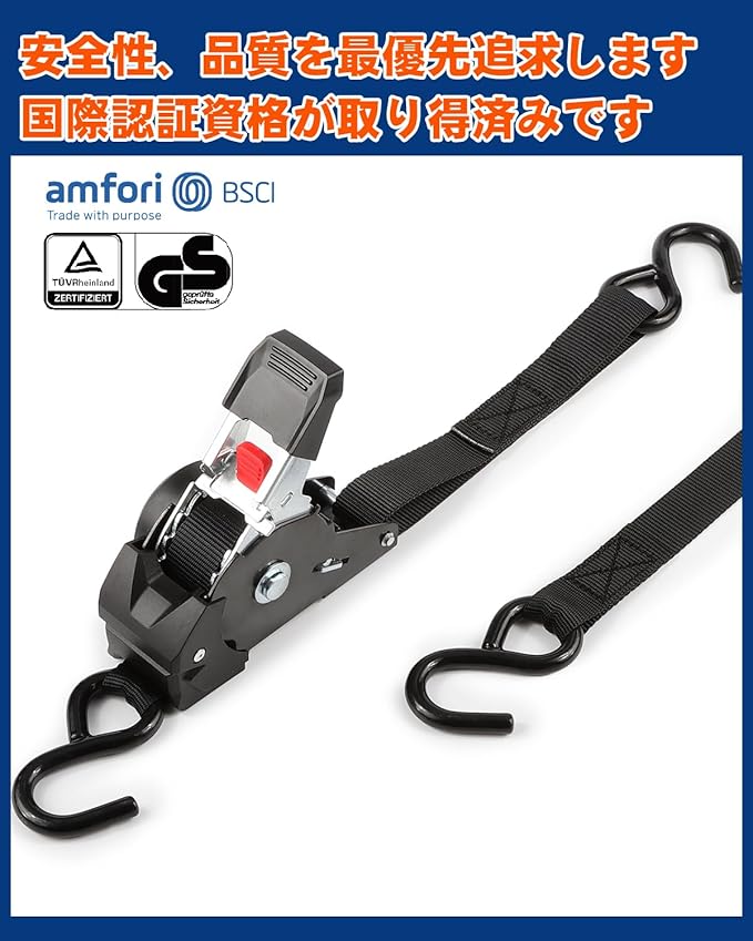 【認証と.】ラチェットベルトは関連するGSおよびCE基準に適合していますので、安心してご使用ください。商品到着から30日以内の返品・交換を承ります。