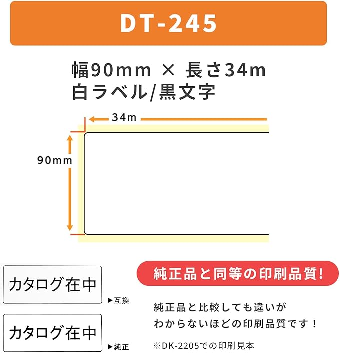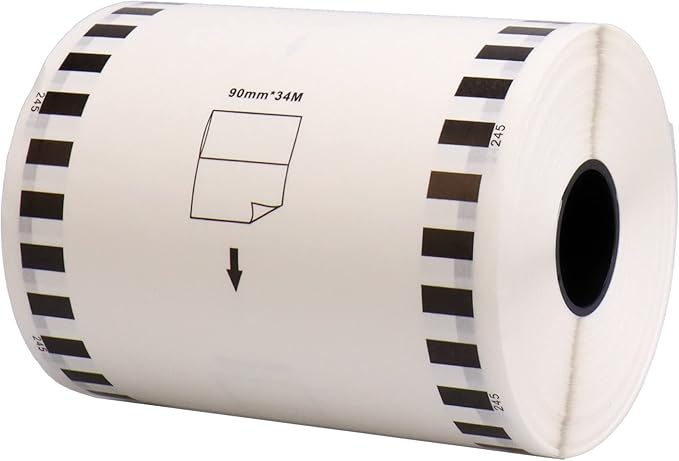 【エコスロ】ブラザー用 長尺紙テープ DT-245【 幅90mm / 全長34m 】互換 DTテープ 1個 QL-1050 Type/QL-1115NWB 対応 感熱ラベルプリンター用 ラベルロール(白地/黒文字)蛍光増白剤不使用 | oioioichan