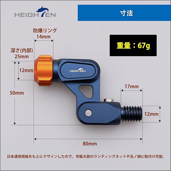 【対応寸法】12mmのネジとナット、市販大部のランディングネットや玉ノ柄に取付け可能。
