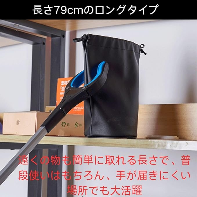 長さ79cmのロングタイプ:遠くの物も簡単に取れる長さで、普段使いはもちろん、手が届きにくい場所でも大活躍。高い場所や低い物の取り扱いもスムーズです。
