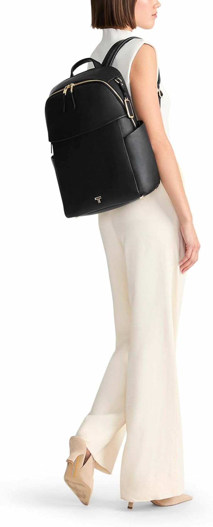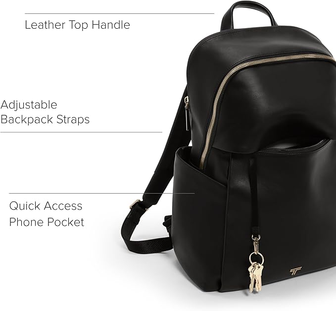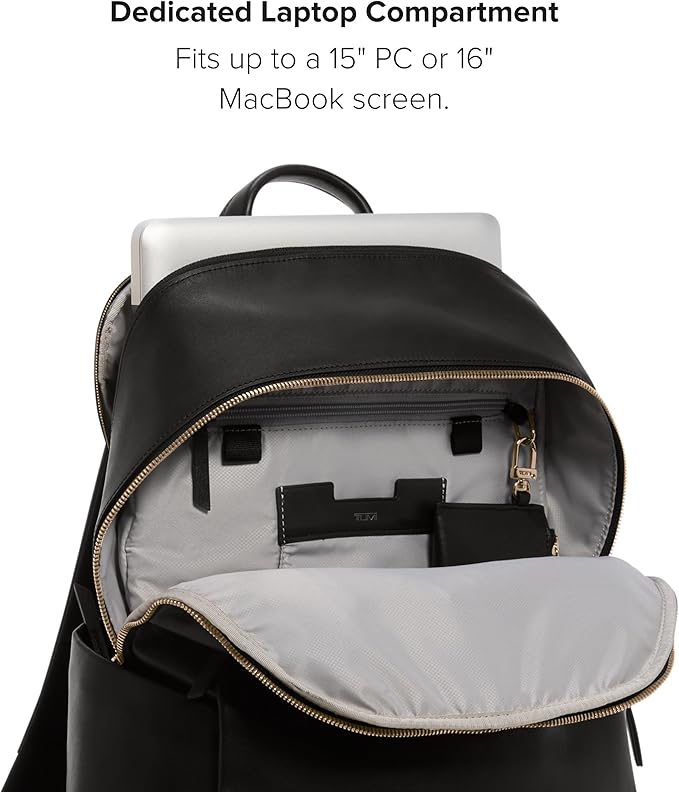 TUMI - Voyageur Rainaバックパック - プレミアムレザーバックパック 男女兼用 - 携帯電話ポケットとノートパソコンコンパートメント付きエブリデイバッグ - ブラック、ライトゴールドの金具, ブラック、ライトゴールドの金具付き。, モダン | oioioichan