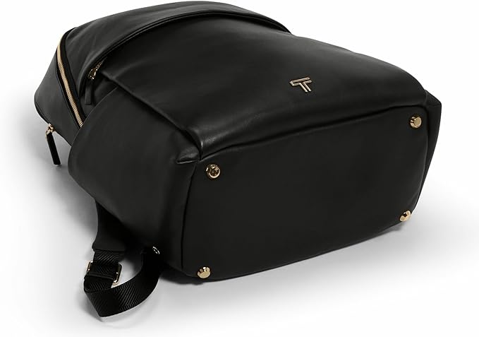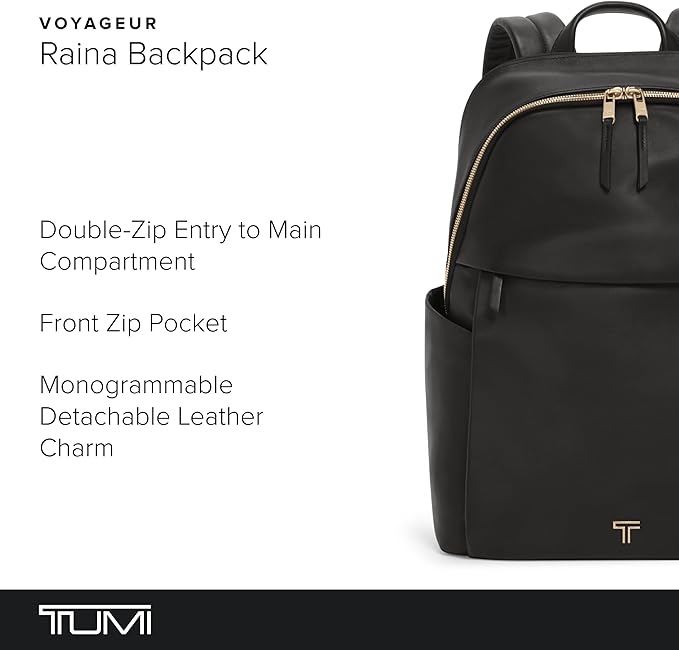 TUMI - Voyageur Rainaバックパック - プレミアムレザーバックパック 男女兼用 - 携帯電話ポケットとノートパソコンコンパートメント付きエブリデイバッグ - ブラック、ライトゴールドの金具, ブラック、ライトゴールドの金具付き。, モダン